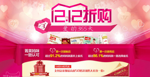“双十二”活动线上足球官网母婴专场早早就开始预热,消费者不仅可以提前领取优惠券,待到“双十二”时直接使用享受满减优惠;同时,活动当日各产品进行了降价促销,买满赠送礼品等,;另外,线上足球官网母婴产品还推出了打包销售产品,通过搭配购买,消费者可享更多优惠。