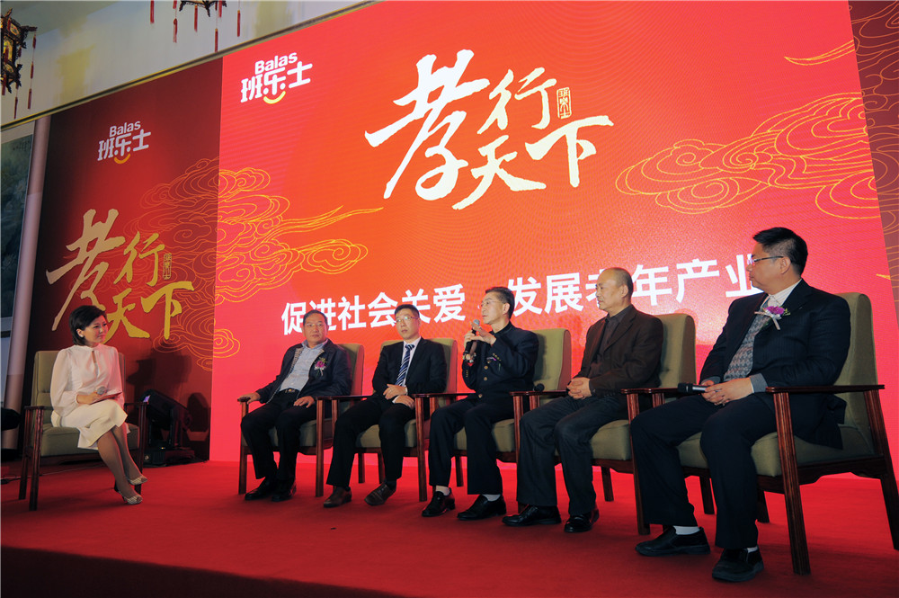 (4月18日班乐士于北京人民大会堂启动孝行公益活动,现场嘉宾就“孝行天下”问题进行了深入的探讨)