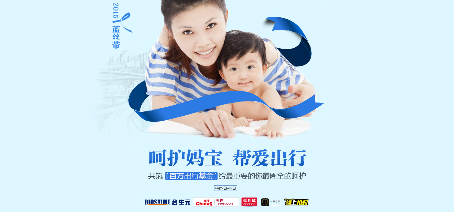 线上足球官网首次跨界联合四大品牌,推出“2015蓝丝带百万出行计划”,呵护宝宝,更关注妈妈,给予全方位的周全保护。